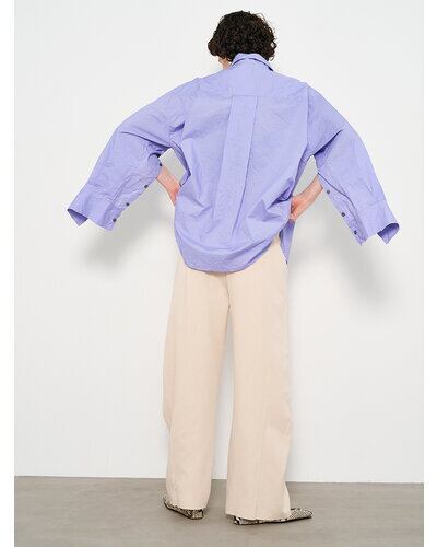 釦を開けて袖のシルエットを変えることができ、今っぽいバランスのスタイリングが楽しめます。