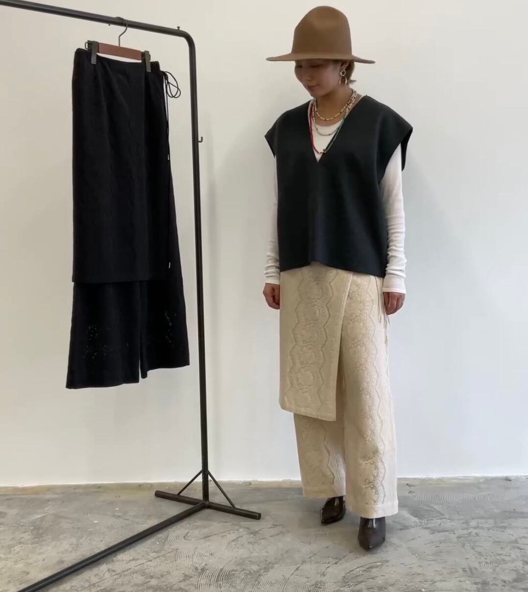 8月下旬納期 甘さ控えめなストライプ柄が特徴なレースパンツ Le Melange(ルメランジュ)のラップスカート付きレースパンツ パンツとラップスカートがセットになったトレンドアイテム フラワーモチーフのレースですが、ストライプ柄なので甘さ控えめの印象です パンツスカート取り外しできるので単品使いできます。