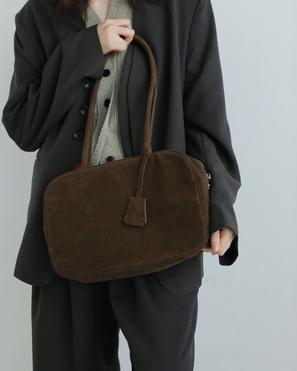 程よい大きさで日常使いしやすいボストンバッグ。横長のボックス型で、13インチ程度のパソコンがはいるサイズ感です。ショルダー紐はゆったりとしたアウターを着ても肩がけしやすい長さなのもポイント。内側にはファスナー付きポケットと2つにわけれるポッケつきで細かなアイテムも入れやすいです。