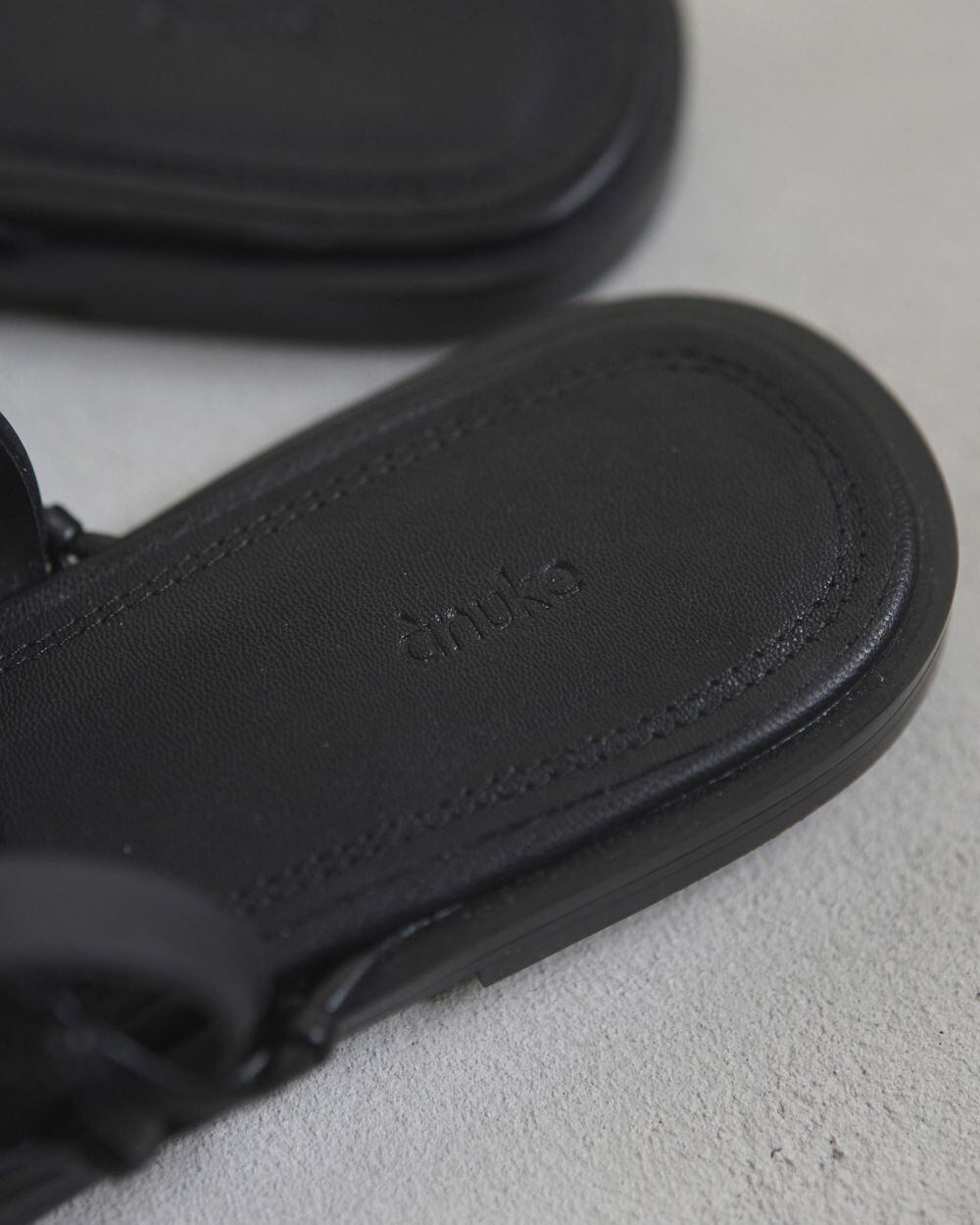 フラットなエコレザーブレードを一つ一つ手作業で編み込んだメッシュサンダル。 大きめのメッシュに編み込みの結び目がアクセントになり、立体的な仕上がりで、コーディネートのポイントになります。クッション性のあるインソールとかかとを固定するバンド付きで、履き心地の良さにもこだわりました。素足ではもちろん、シアーソックスやカラーソックスなどとレイヤードするのも可愛いです。