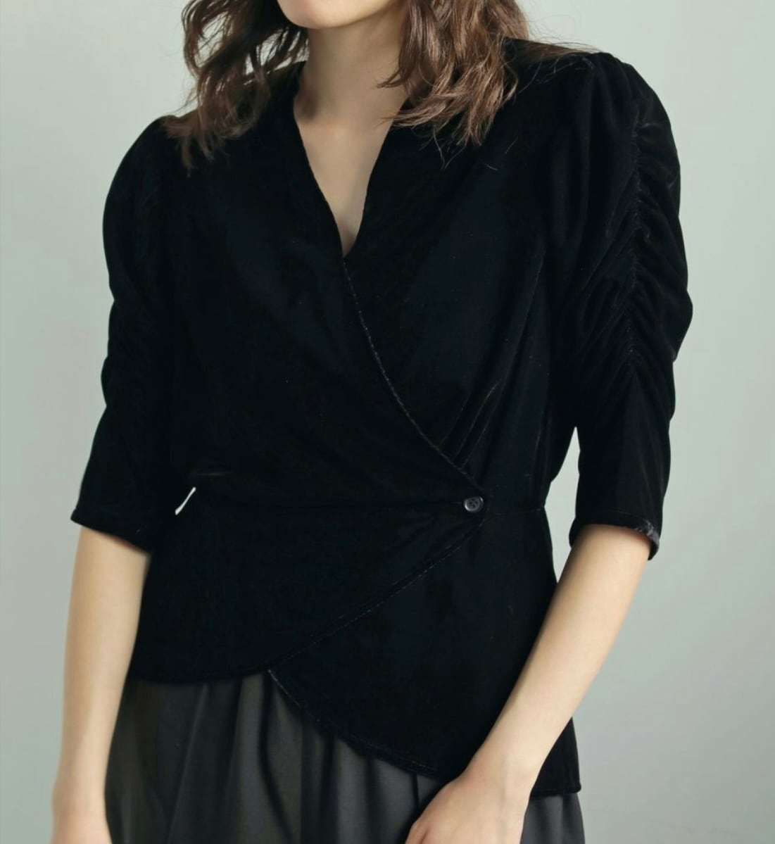 インスタ紹介あり 前後2wayで着られるベロアトップス。肩パッド入りで、袖のボリュームが可愛い1枚。 デニムやエコレザー、布帛のパンツなど、合わせやすいアイテムです。前後どちらでも 女性らしいシルエットで着ていただけます。 サイズ F カラー BLK