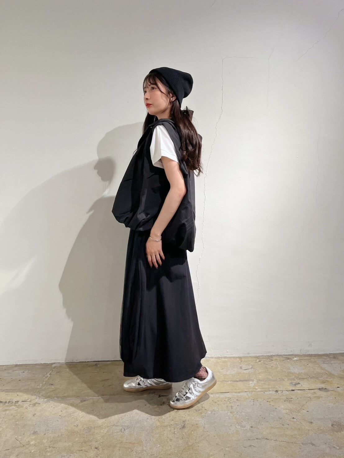 着こなしのアクセントとしてぴったりなこのベストは、裾のバルーンシルエットが絶妙なボリューム感を演出します。軽やかな素材感が魅力で、オールシーズン活躍できるアイテムです。シンプルなTシャツやブラウスとの相性も抜群で、普段のコーディネートに新しい風を吹き込んでくれることでしょう。