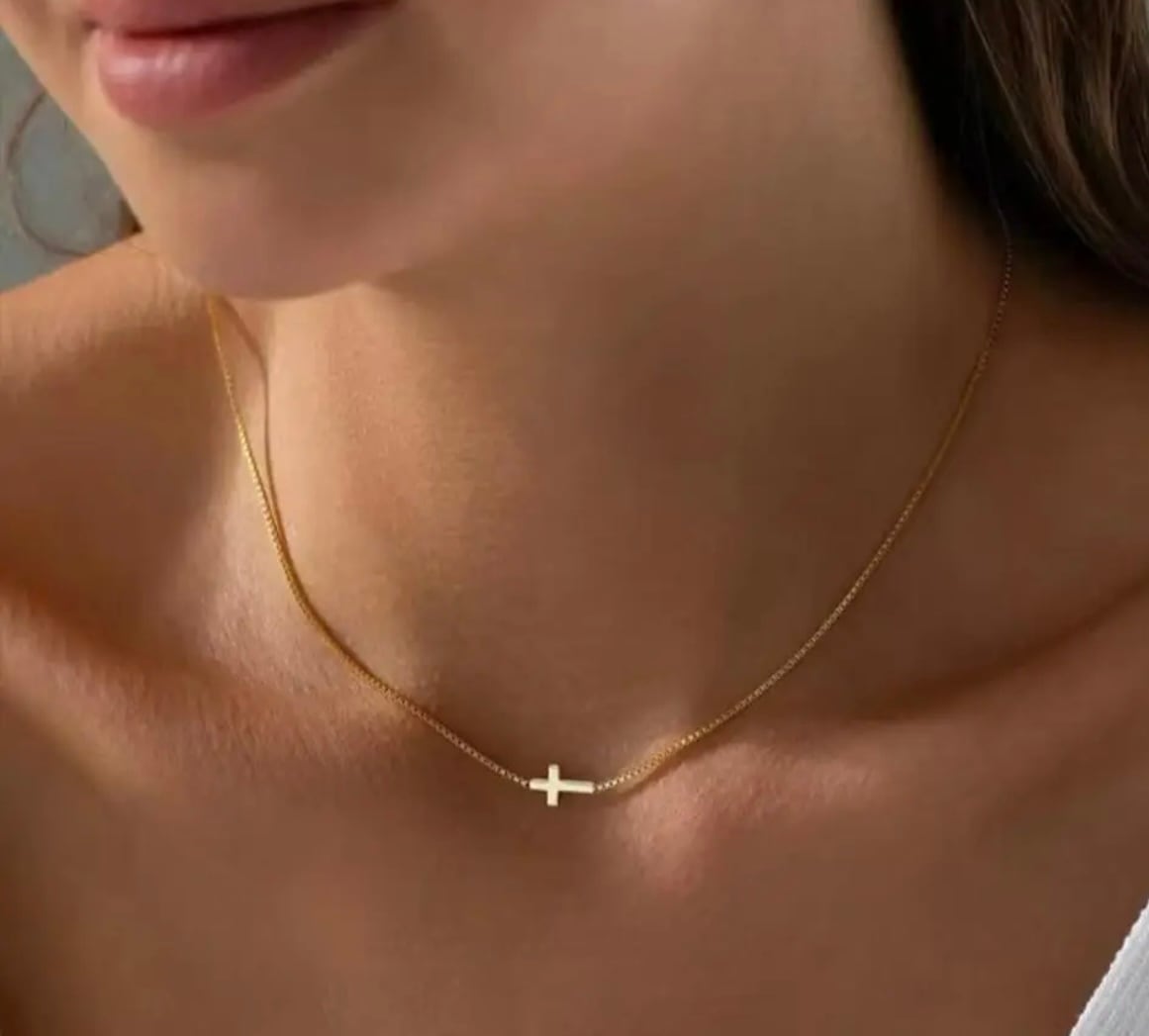 さり気ないクロスがアクセント シンプルチェーンのクロスネックレスです サイズ:約47.5cm~52.5cm 色:シルバー/ゴールド 素材:ステンレス