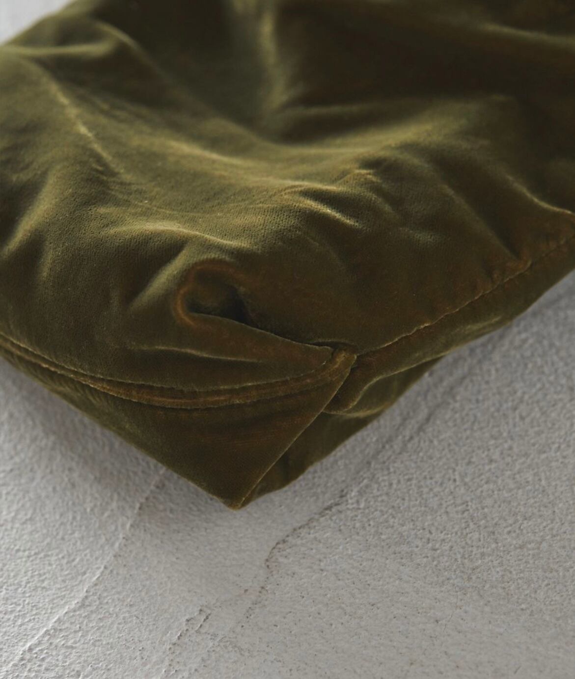 ほのかな光沢が美しいベルベット素材の巾着バッグ。程良く小ぶりなサイズ感が女性らしい手元を演出し、スタイリングに品のあるアクセントを添えます。結び目を効かせたハンドルや、エコレザーの別紐使いなど、細部にもこだわっています。必要最低限のものが収まる実用性も備えつつ、ラフに持ってもどこか上品にまとまるのも魅力。