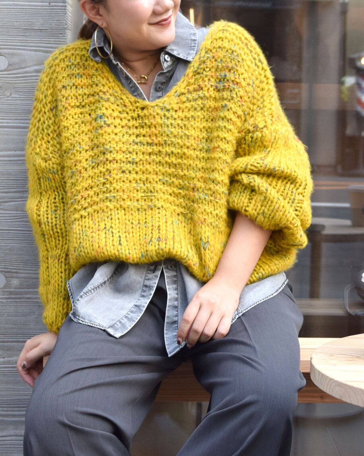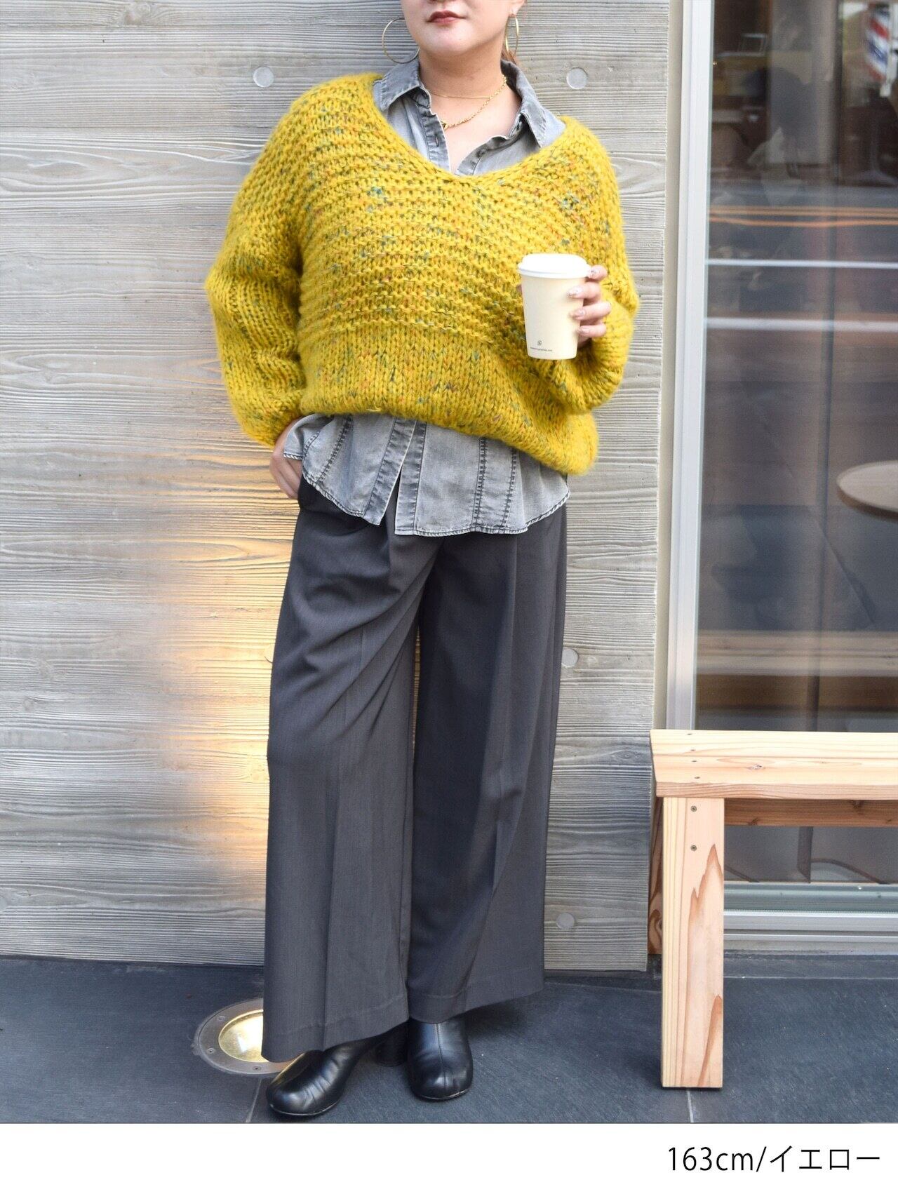 インスタライブあり! インスタ動画あり! V開きのコクーンシルエットのMIXヤーンニットです。 ROSIEEらしいカラーバリエーションでご用意しています。 丸みのあるシルエットながら、V開きなので首元はスッキリ着ていただけます。 編み地も切り替えているのもワンポイントです。 暗めの色が多くなりがちな秋冬に、一枚発色の良いニットを持っておくと気分もあがります♪ 着丈47