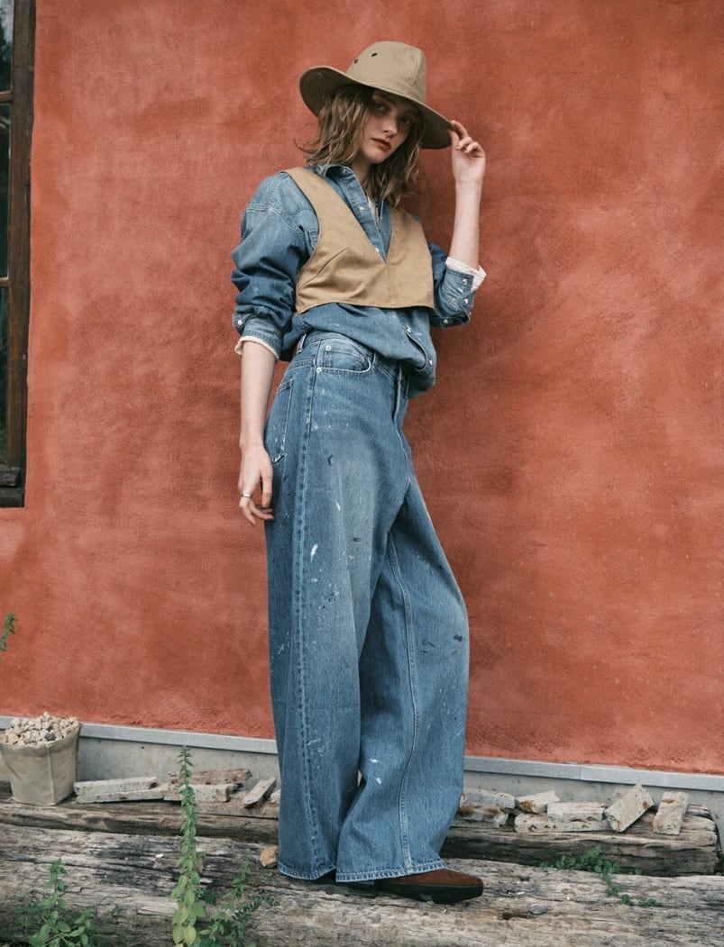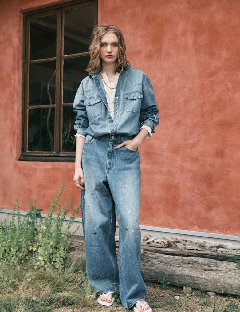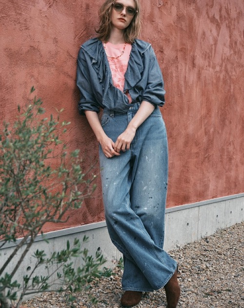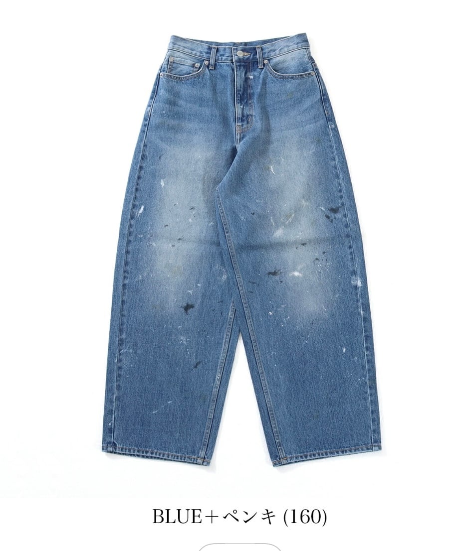 しっかりとした12.8oz.の肉厚デニムに、職人の手作業によるペンキ散らし加工を施した、存在感のある一本。ブリーチとスリによるリアルなUSED加工で、穿き込んだような風合いを楽しめます。ハイウエストからヒップにかけて女性らしい丸みを持たせ、裾に向かってゆるやかにカーブを描くシルエットは、脚のラインを拾いにくく、穿くだけでトレンド感のあるスタイルが完成します。
