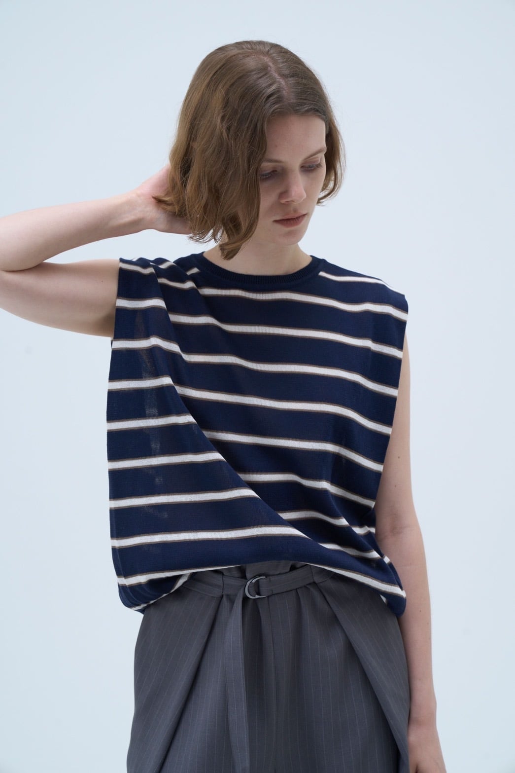 ボーダーデザインが特徴的なノースリーブのトップスです。