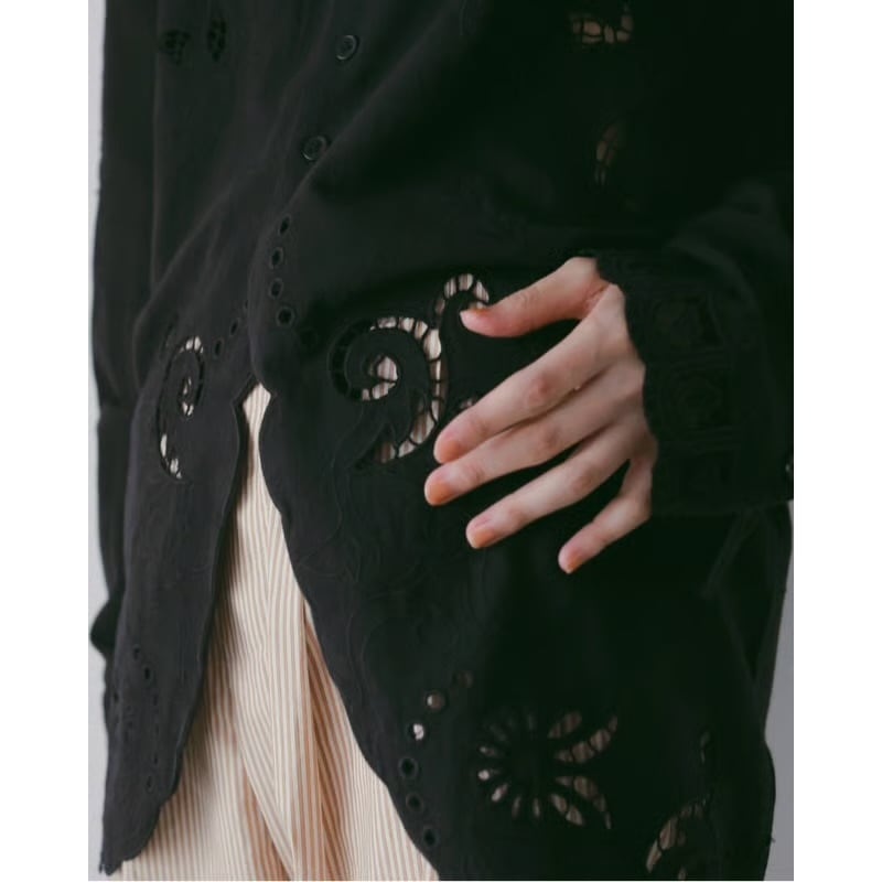 【anuke】Cutwork Opencollar Shirts