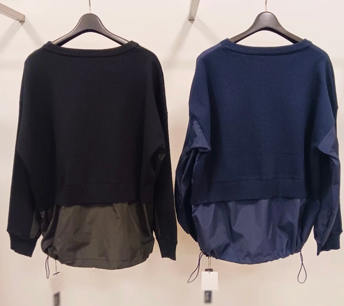 感謝祭アイテム30%OFF 感謝祭価格 ¥15400⇒¥ 10780 異素材ミックスの 1枚で決まるデザイントップスです 裾ドロストあり フォルムをかえれます ポリエステル・ナイロン 別布ナイロン ※手洗い可能