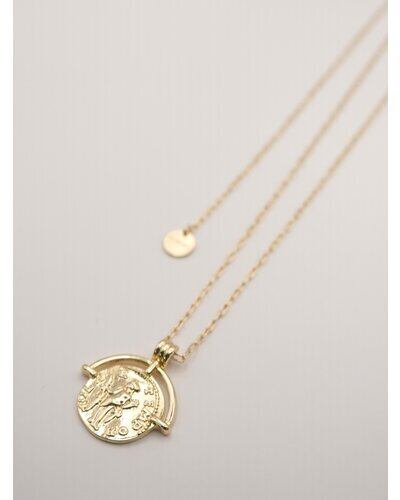 古代ローマをモチーフにしたヴィンテージライクなデザインが魅力的なコインネックレス。肌馴染みしやすいゴールドカラーと、少しくすんだマットシルバーの2色をご用意いたしました。チェーンはスライドビーズで長さ調節が可能となっておりますので、お手持ちのネックレスとの重ね付けもしやすくなっております。
