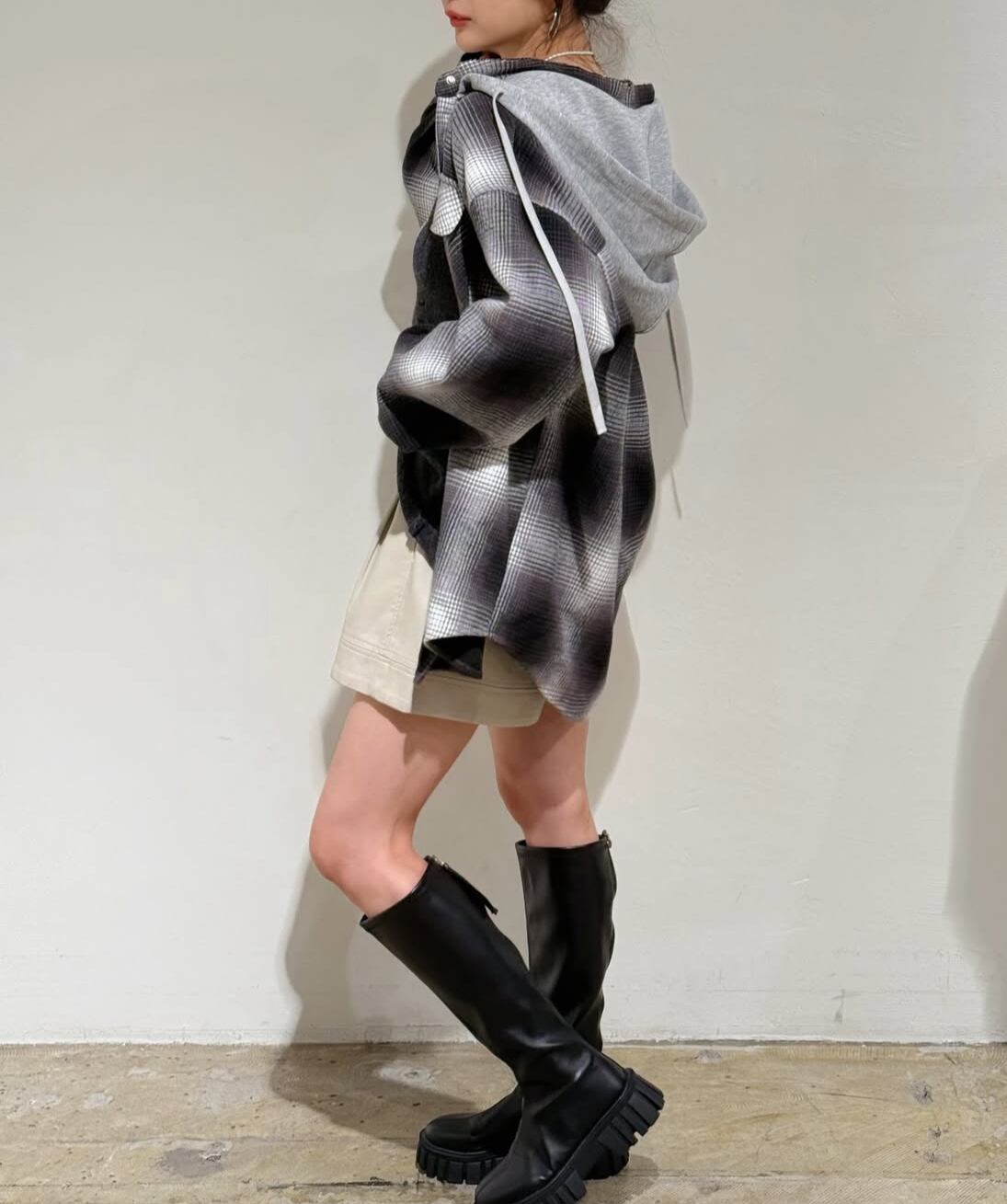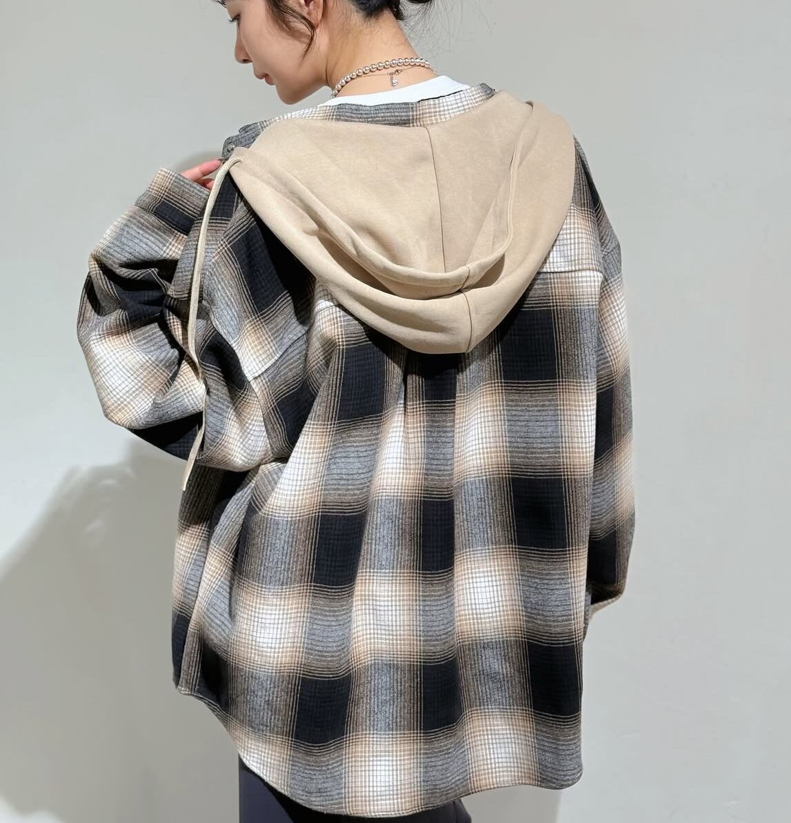 lグラデーションのチェック柄が目を惹くフーディシャツ