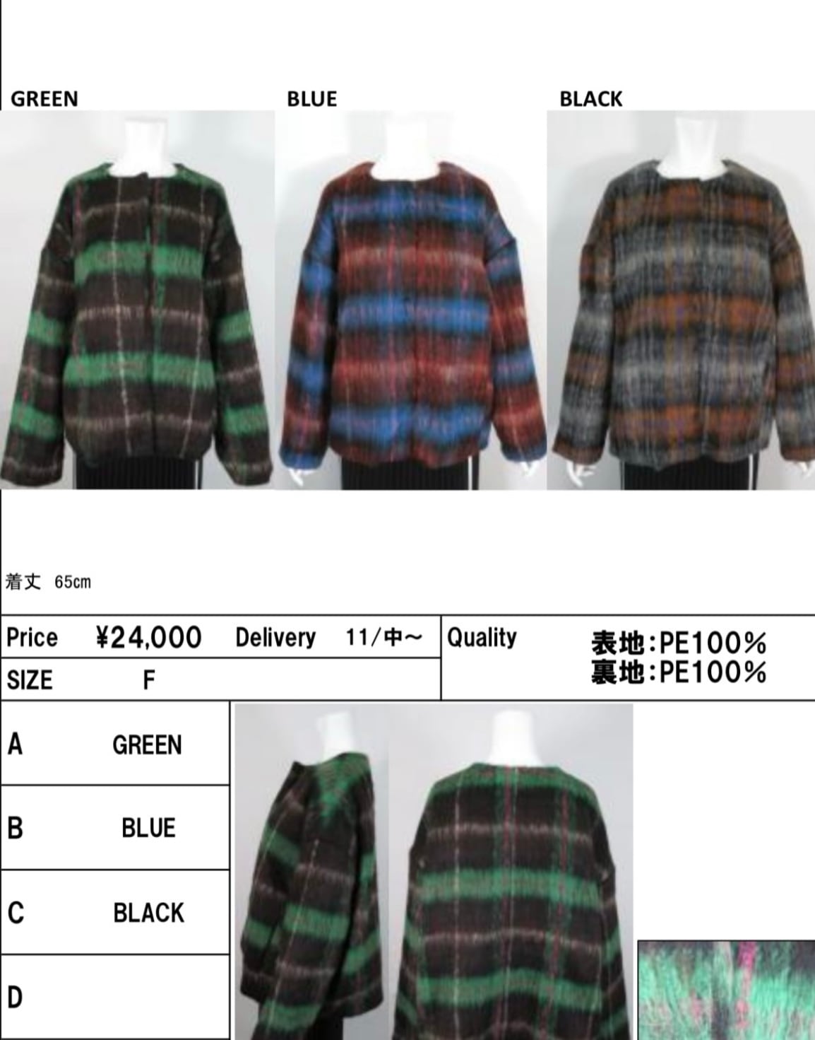 グリーンが12月上旬入荷予定です