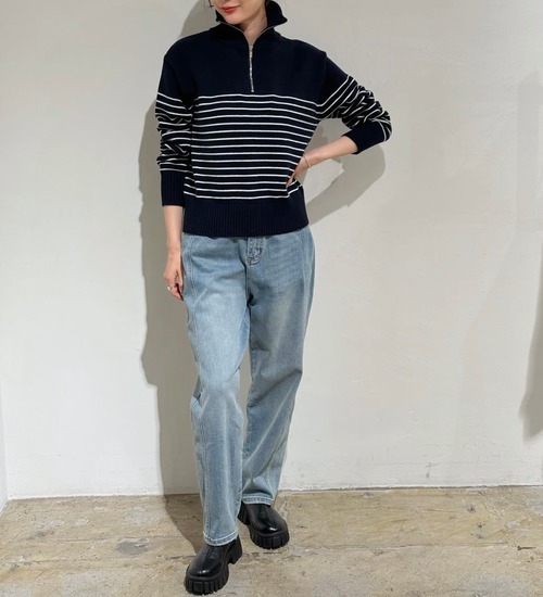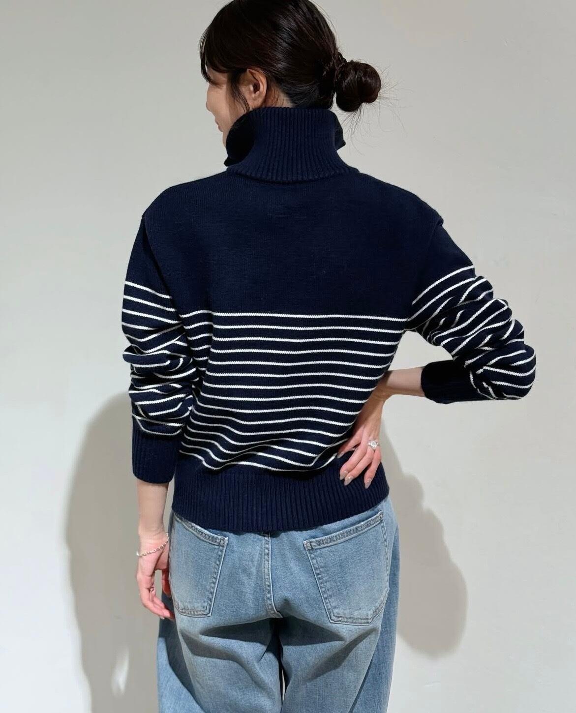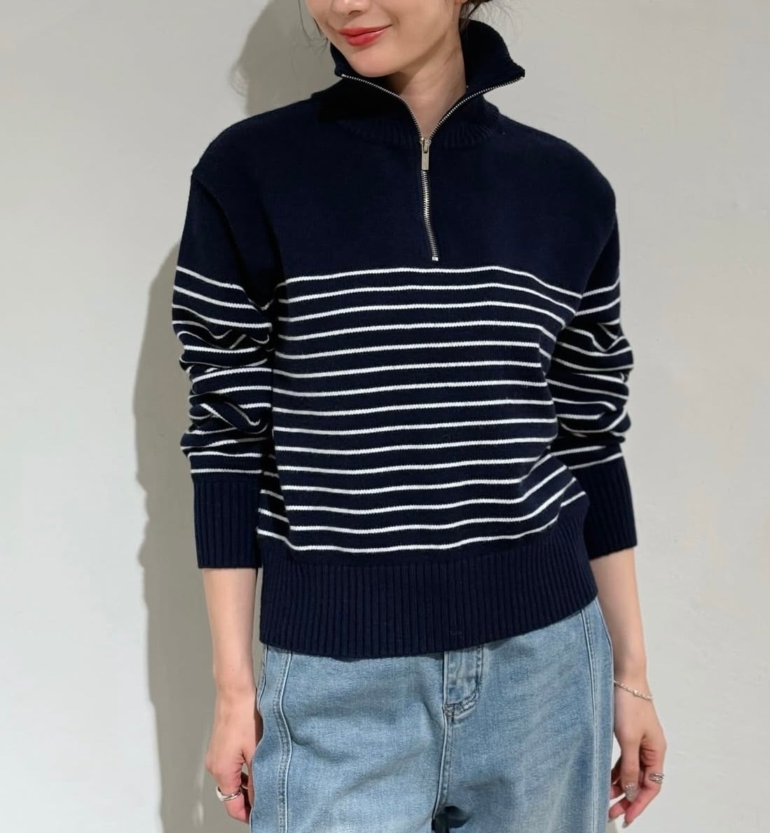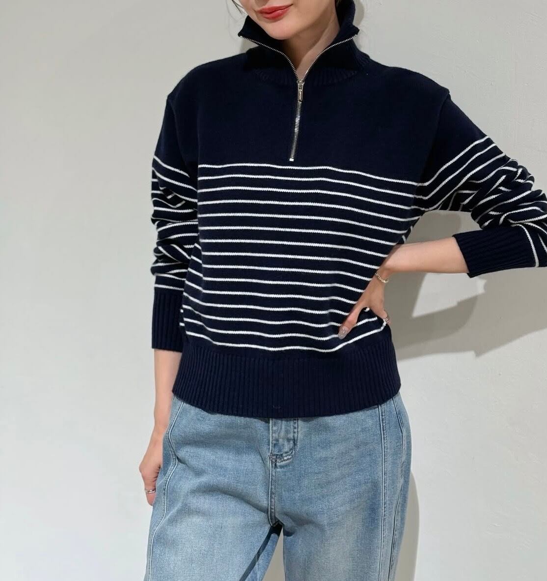トラディショナルなボーダー柄を、ジップデザインでモダンに仕上げたハーフZIPニット