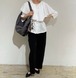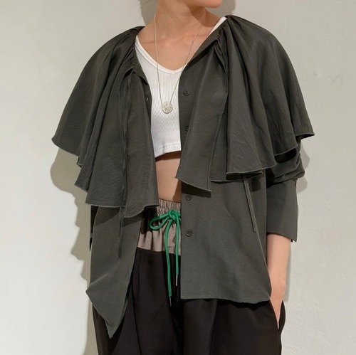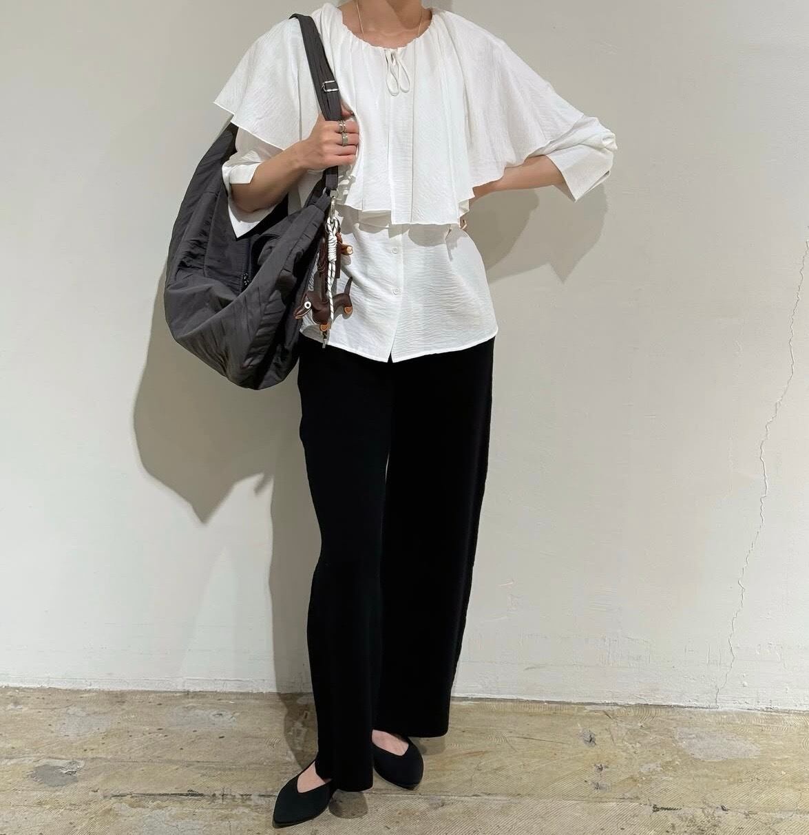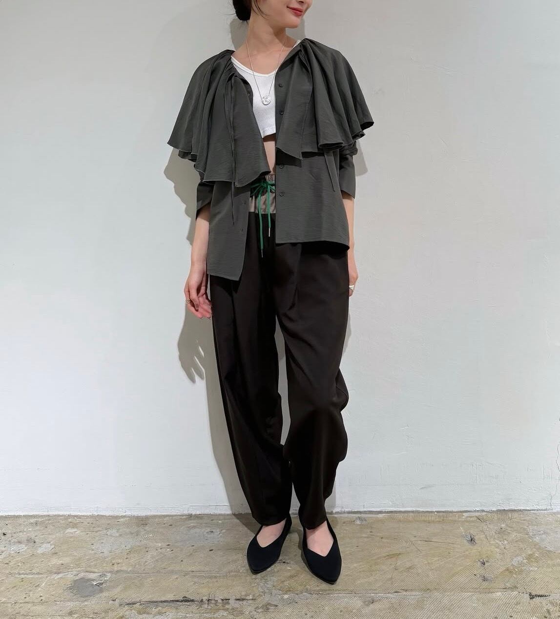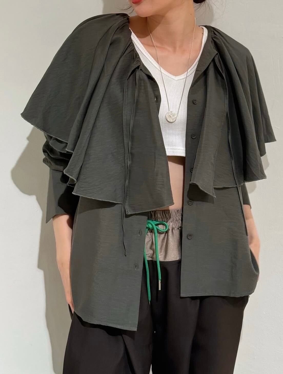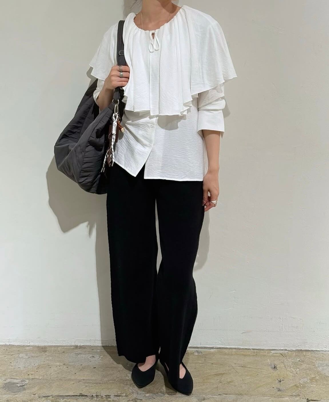 感謝祭アイテム40%オフ 感謝祭価格 ¥14300⇒¥8580 贅沢なフリルデザインが目を惹く主役級ブラウス。 後ろリボンのディテールで女性らしさをプラスし、パンツにもスカートにも合わせやすい一枚です