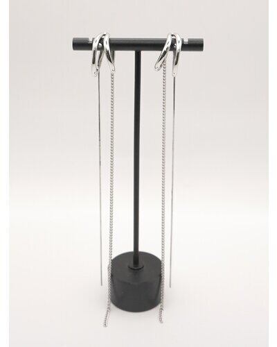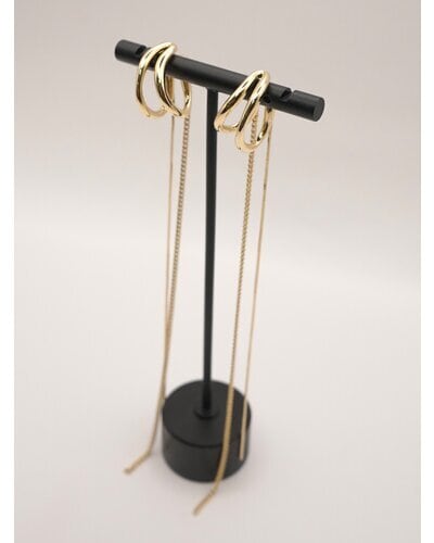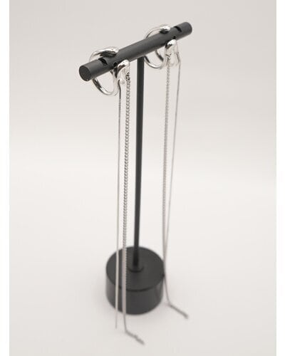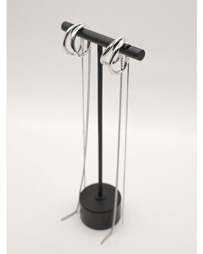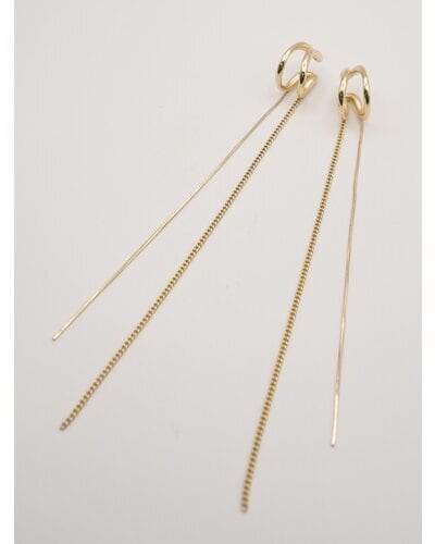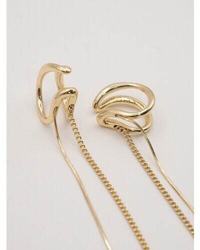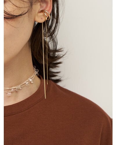 強弱のある線形で描かれたダブルラインのイヤカフに、きらっと揺れる2種類のロングチェーンが施された上品なデザインとなっております。シンプルだけど存在感のあるデザインなのでカジュアルからオケージョンまで幅広いコーディネートに合わせやすいもの嬉しいポイントです。左右対称にデザインされていますのでピアスのようにペアでつけるのはもちろん、片耳使いでも◎全て真鍮製なので耳たぶの厚みによって開口口の調整が可能となっております。内側には「CHIGNON」の刻印入り。