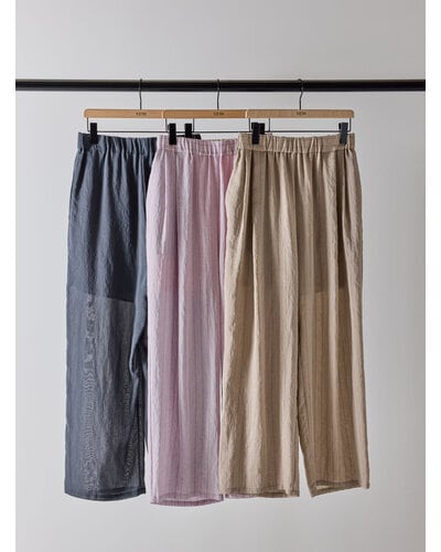 シアー素材のストライプ生地を使用したイージーパンツです。