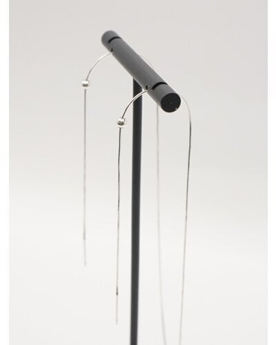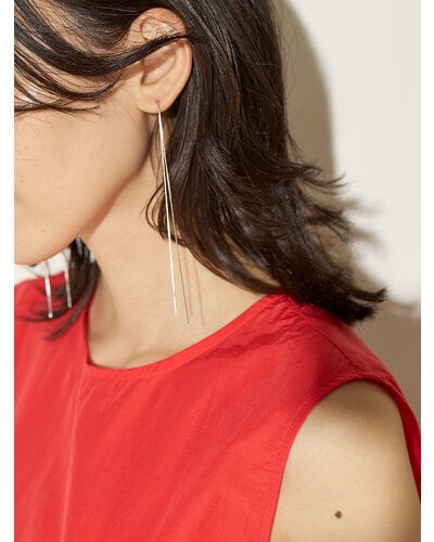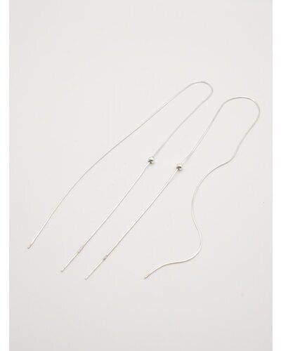Silver925の角スネークチェーンを使用したロングアメリカンピアス。アメリカンピアスは先端のポストから耳穴に通していただき、お好きな位置でチェーンをUターンさせる仕様になります。小さな丸玉キャッチも付いていますので、前を長くして垂らして後ろをキャッチで留めておくことも可能です。