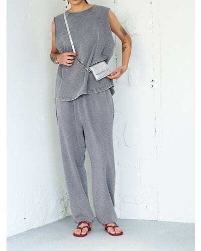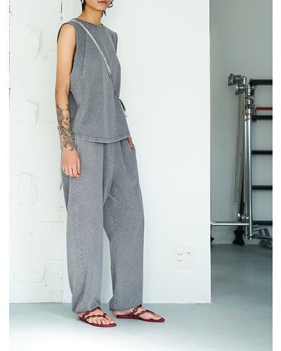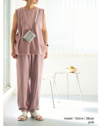 綿100%のミニ裏毛にケミカル+オーバーダイ加工を施したスウェットパンツです。