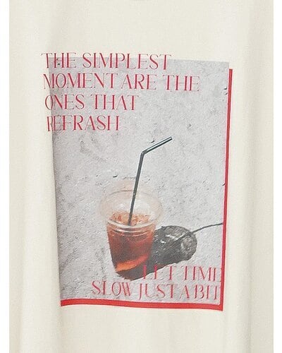 フォトプリントが印象的な、大人カジュアルに映えるフレンチスリーブTシャツ。日常のワンシーンを切り取ったフォトデザインをプリントし、さりげないメッセージ性と洗練された雰囲気をプラス。程よくゆとりのある身幅で、体のラインを拾いにくく、リラックスした着心地も魅力的。