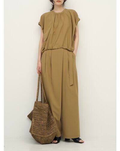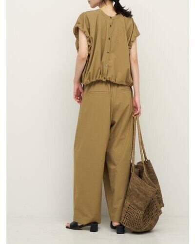 ウエストにはストレッチコードを入れているので、ギャザーを寄せて調節することができます。