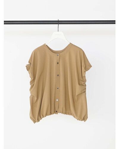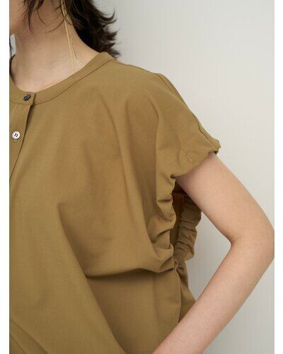二の腕をさりげなくカバーしてくれる、立体感あるアームホールデザインがポイントのフレンチスリーブシャツ。