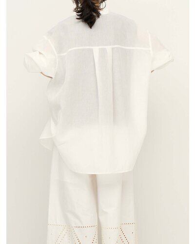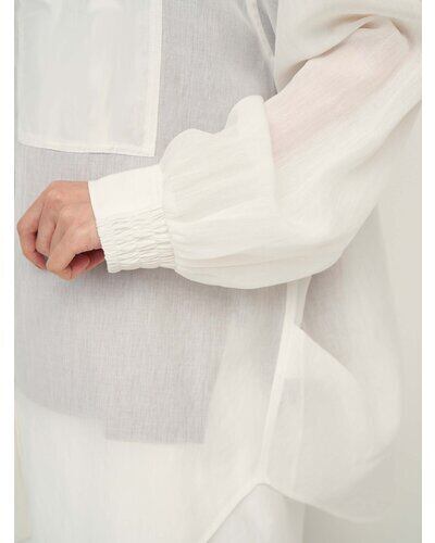 コットンオーガンジーを思わせる、繊細で軽やか、程よいハリ感のある素材を用いて作ったオーバーサイズシャツです。