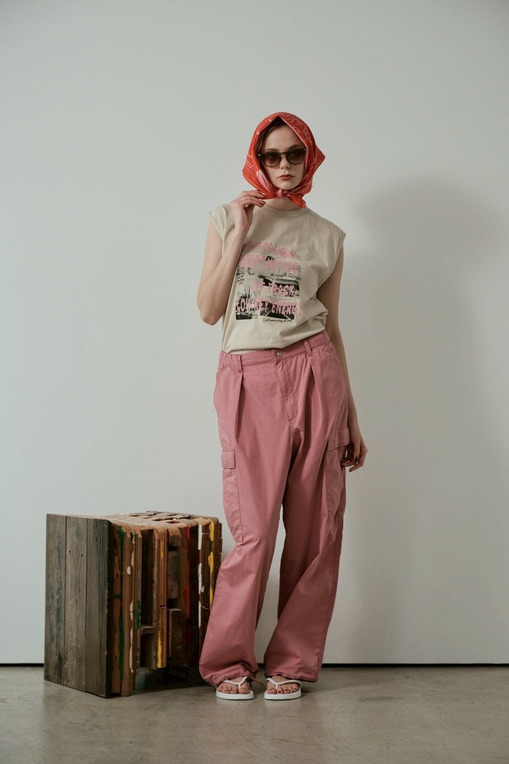 Mサイズの袖と裾をカットオフした、リメイク風ノースリーブです。