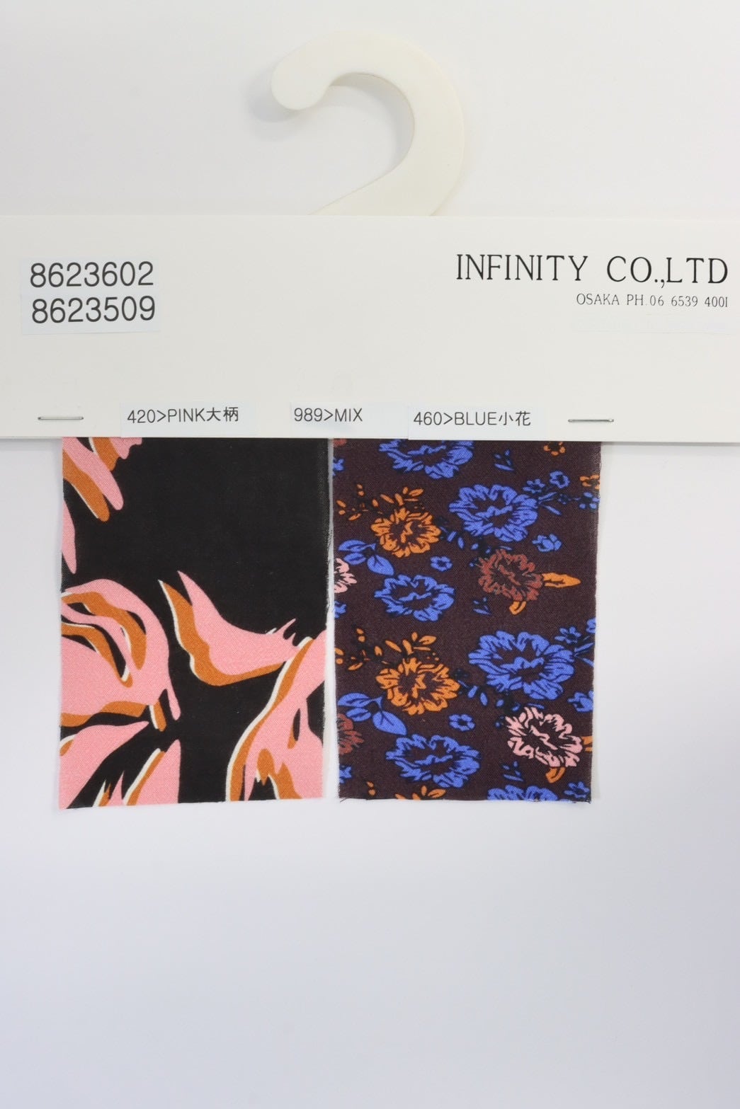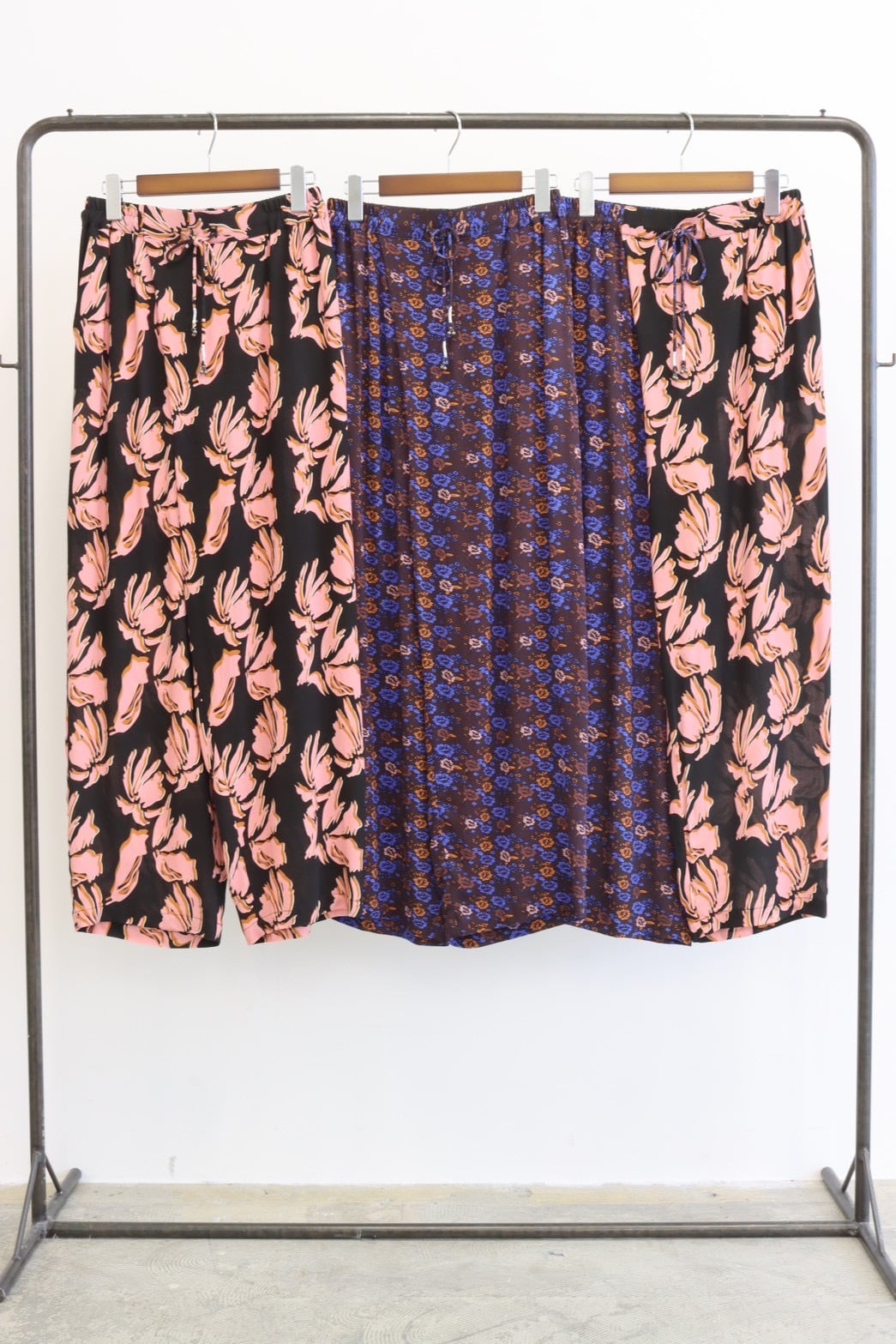 花のような大柄と、小花柄の2柄展開にプラス、パンツのみ2柄を掛け合わせたMIXがあります。