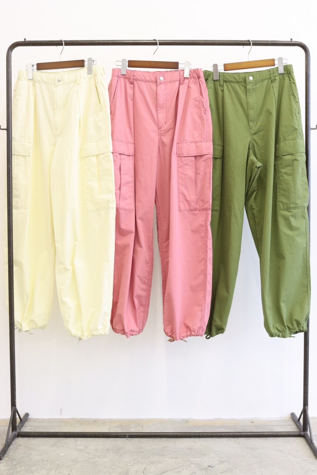 5月上旬納期 コットンカーゴパンツ 【SIZE】 総丈 105 ウエスト 70~87 ヒップ 106+ 股下 72 ※スタッフ採寸の為、若干誤差がある可能性があります。 【QUALITY】 コットン 100%