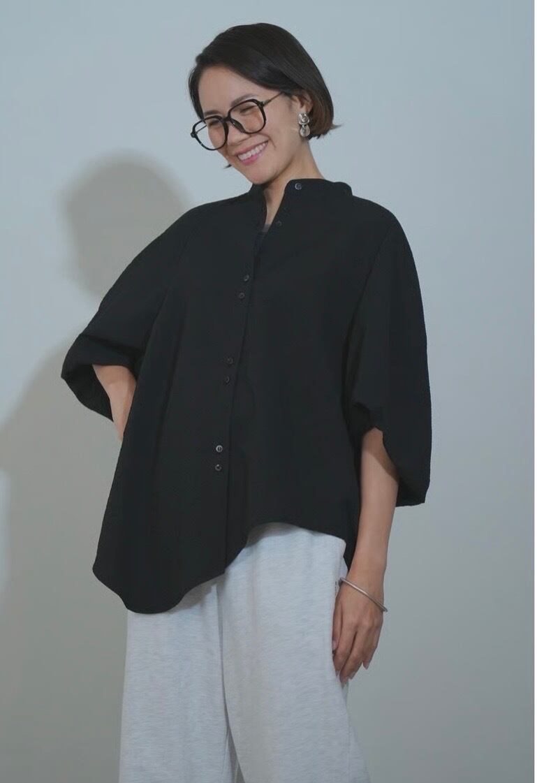 4月中旬納期 同素材パンツとセットアップ可能 ワッフルクロスバルーン袖BL 着丈76 身幅60.5 裄丈57 手洗い可 ポリエステル 100%