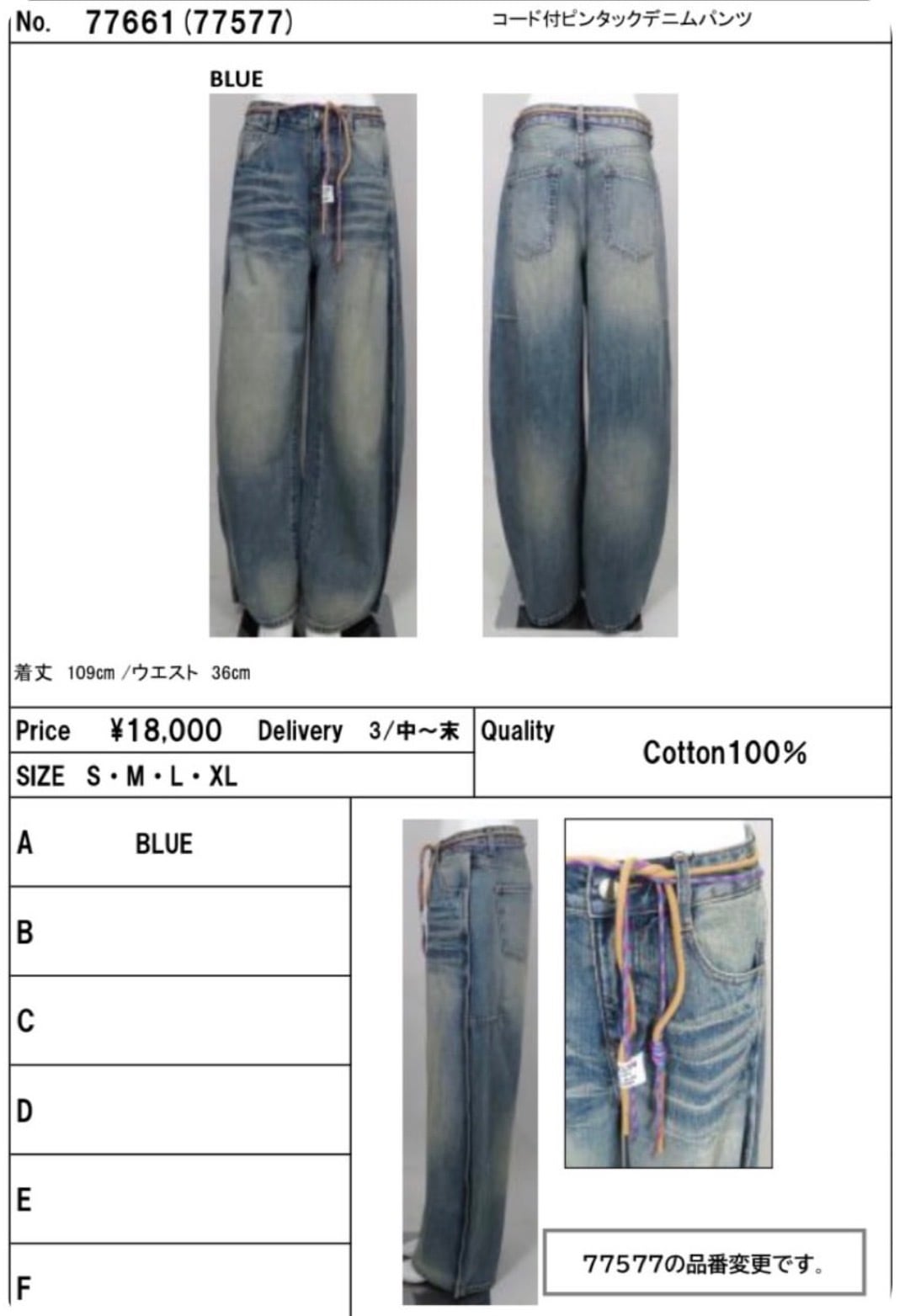 コードピンタックデニムパンツ