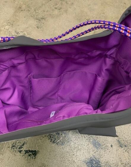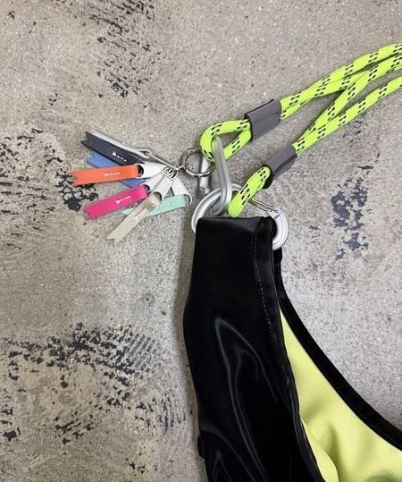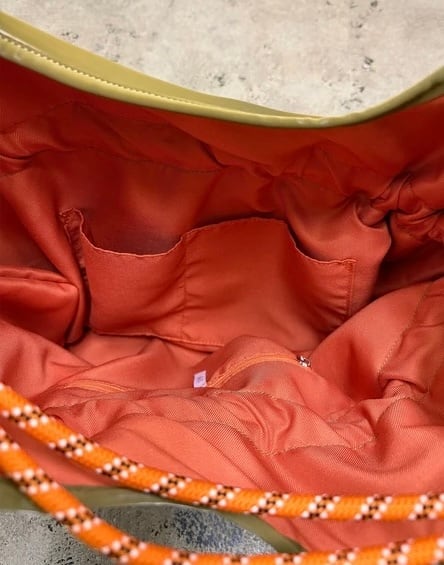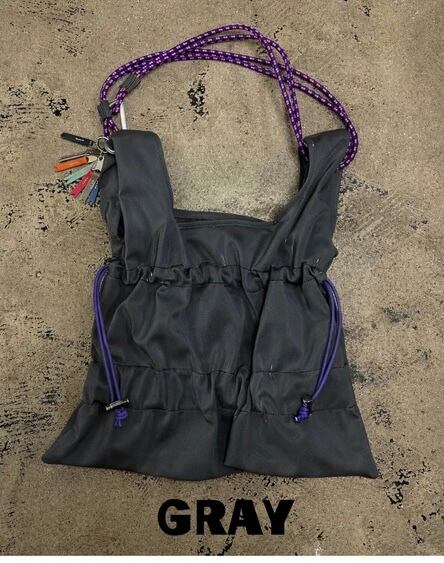 ショルダー部分にはロープハンドルを採用し、カラビナを使って長さ調整が可能◎