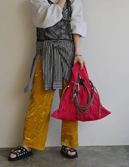立体的なギャザーデザインで表情が変化し、一気にモードな雰囲気に♪