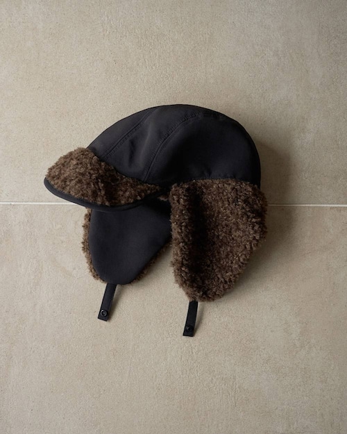 柔らかなボアが顔周りを優しく包むフライトキャップ。フラットなナイロン面とボア面のリバーシブル仕様です。耳まで覆うデザインで、防寒性も十分。サイドのストラップで耳周りをトップに上げることも可能。気分やスタイルに合わせてアレンジして被れます。シンプルな装いにプラスすれば、アクセントを添え、存在感ある着こなしに。