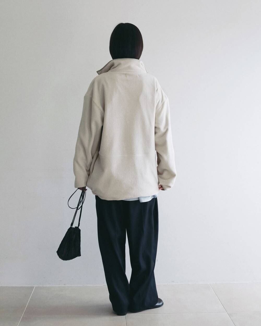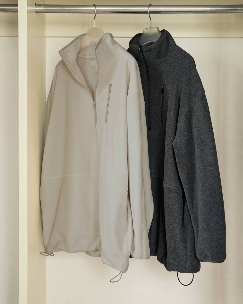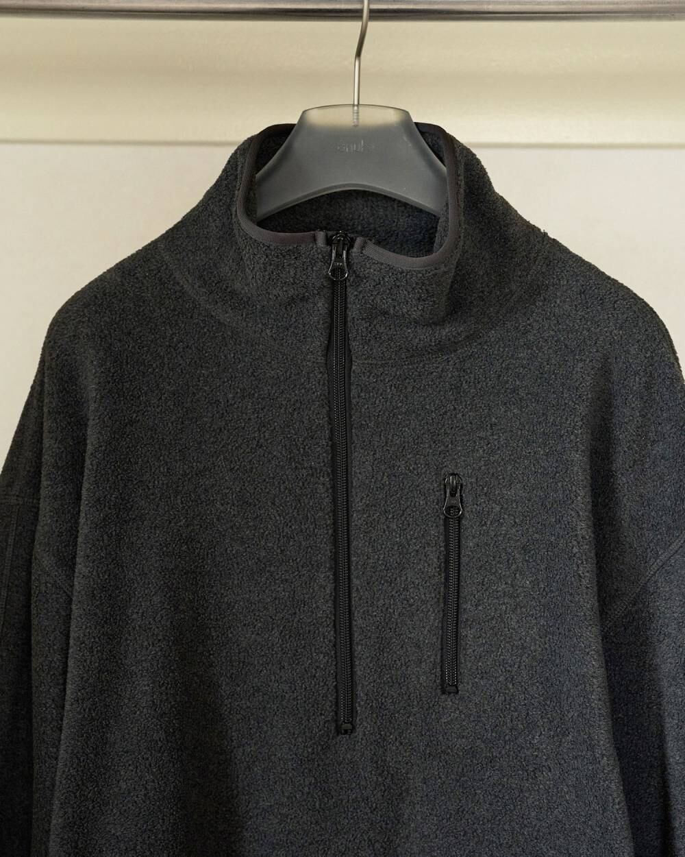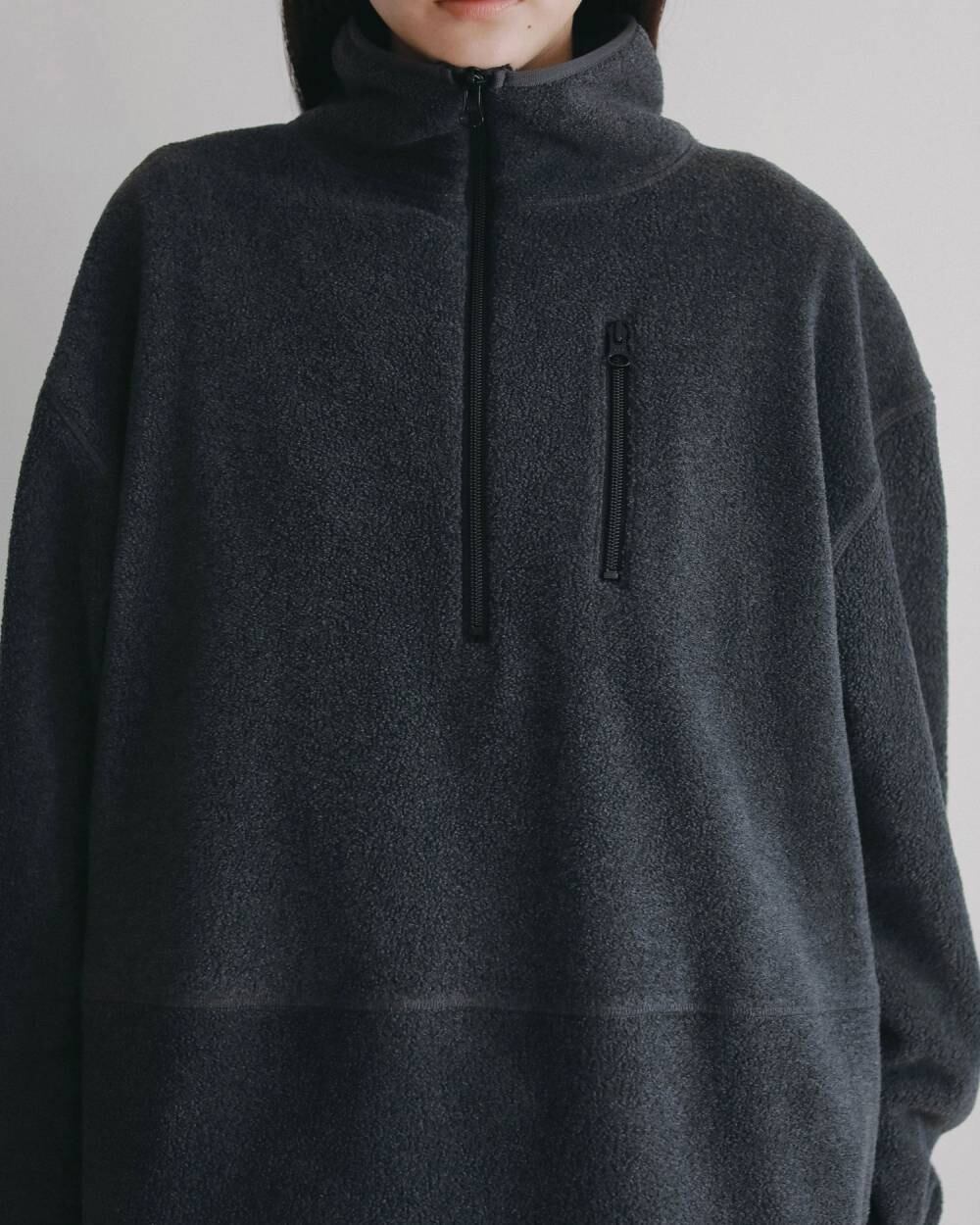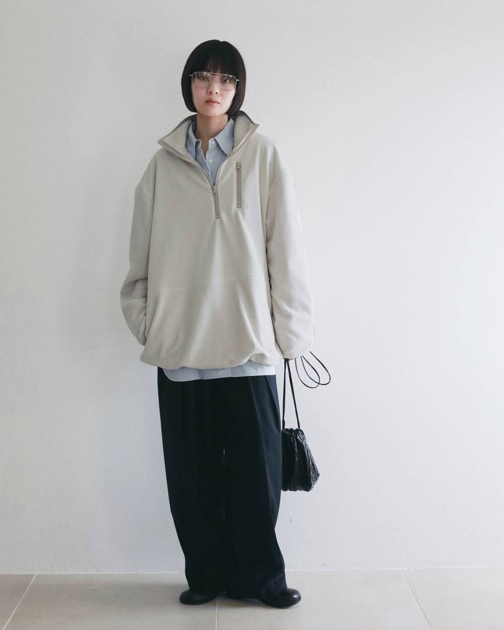 NO:62620307合わせて、季節感のある足元を楽しんで。裾のドロストで丈を調節すれば、ハーフZIPトップスとしても着用可能です。ゆったりとしたサイジングと柔らかな着心地で、気負わず着られる一枚。同素材のFleece Rough Pantsとのセットアップもおすすめです。※オートミールは代用素材を使用しています。Fleece Rough Pantsのオートミールカラーと同じ杢調になります。