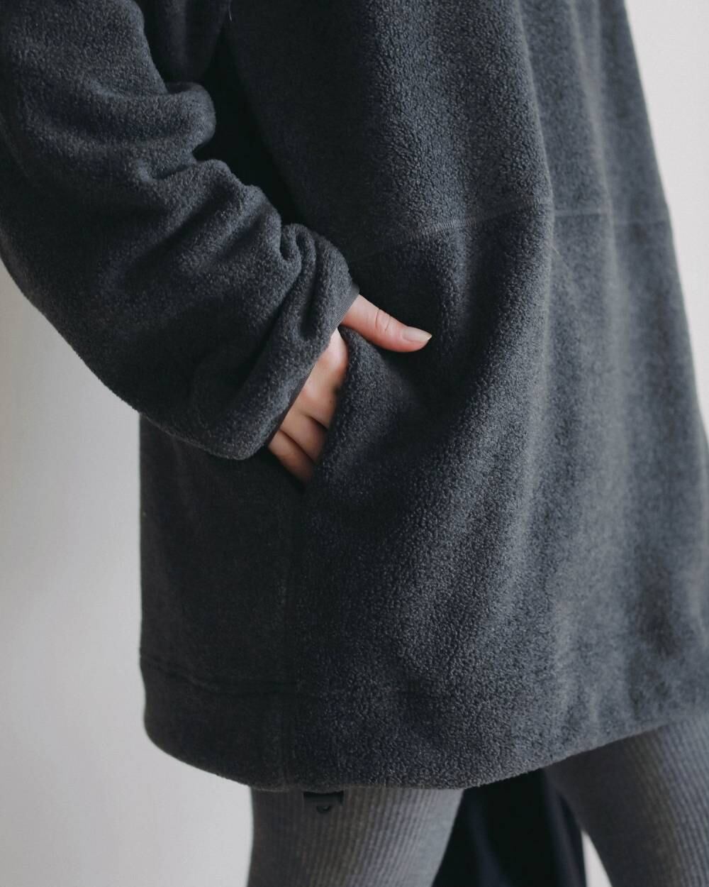 フリース素材で防寒性のあるミニワンピース。タイツやロングブーツを合わせて、季節感のある足元を楽しんで。裾のドロストで丈を調節すれば、ハーフZIPトップスとしても着用可能です。ゆったりとしたサイジングと柔らかな着心地で、気負わず着られる一枚。同素材のFleece Rough Pantsとのセットアップもおすすめです。※オートミールは代用素材を使用しています。Fleece Rough Pantsのオートミールカラーと同じ杢調になります。