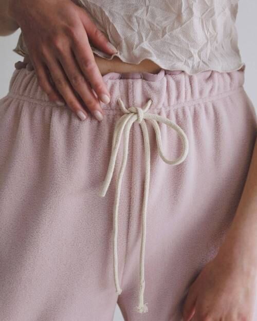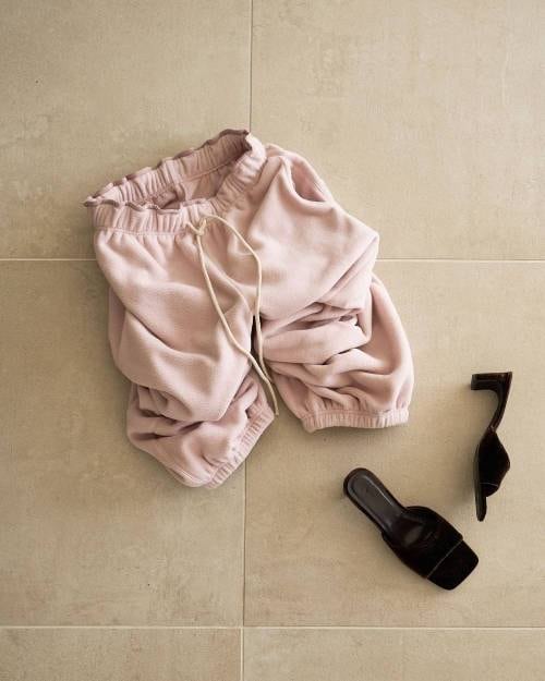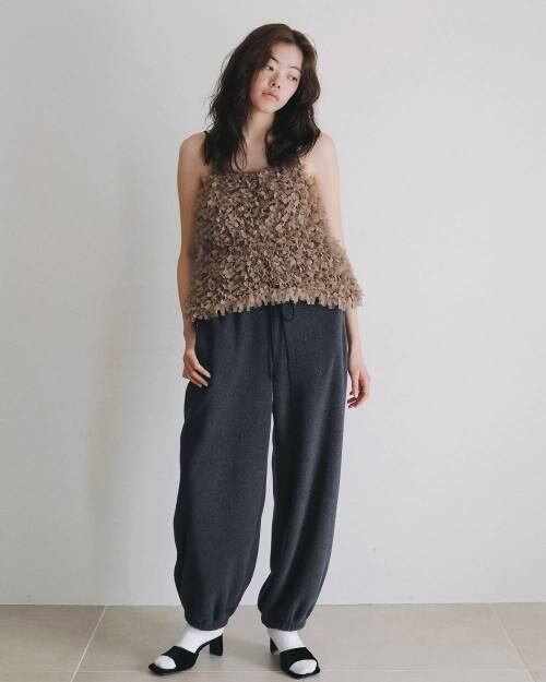 ラフなシルエットで仕立てたフリースパンツ。ウエストはゴムとドロスト仕様で、リラックスした履き心地に。ウエストのパイピングや、裾に溜まるボリュームのあるフォルムもさりげないアクセント。柔らかく暖かな素材感で、秋冬に心地よい一本。ジャケットや女性らしいトップスなど、異なるテイストと合わせてこなれた印象に。同素材の Fleece 2way Onepiece とのセットアップもおすすめです。