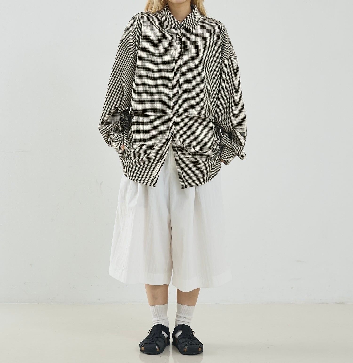 軽やかな生地なので、秋は一枚で冬はアウターやニットの下に重ねて着ることも可能です。