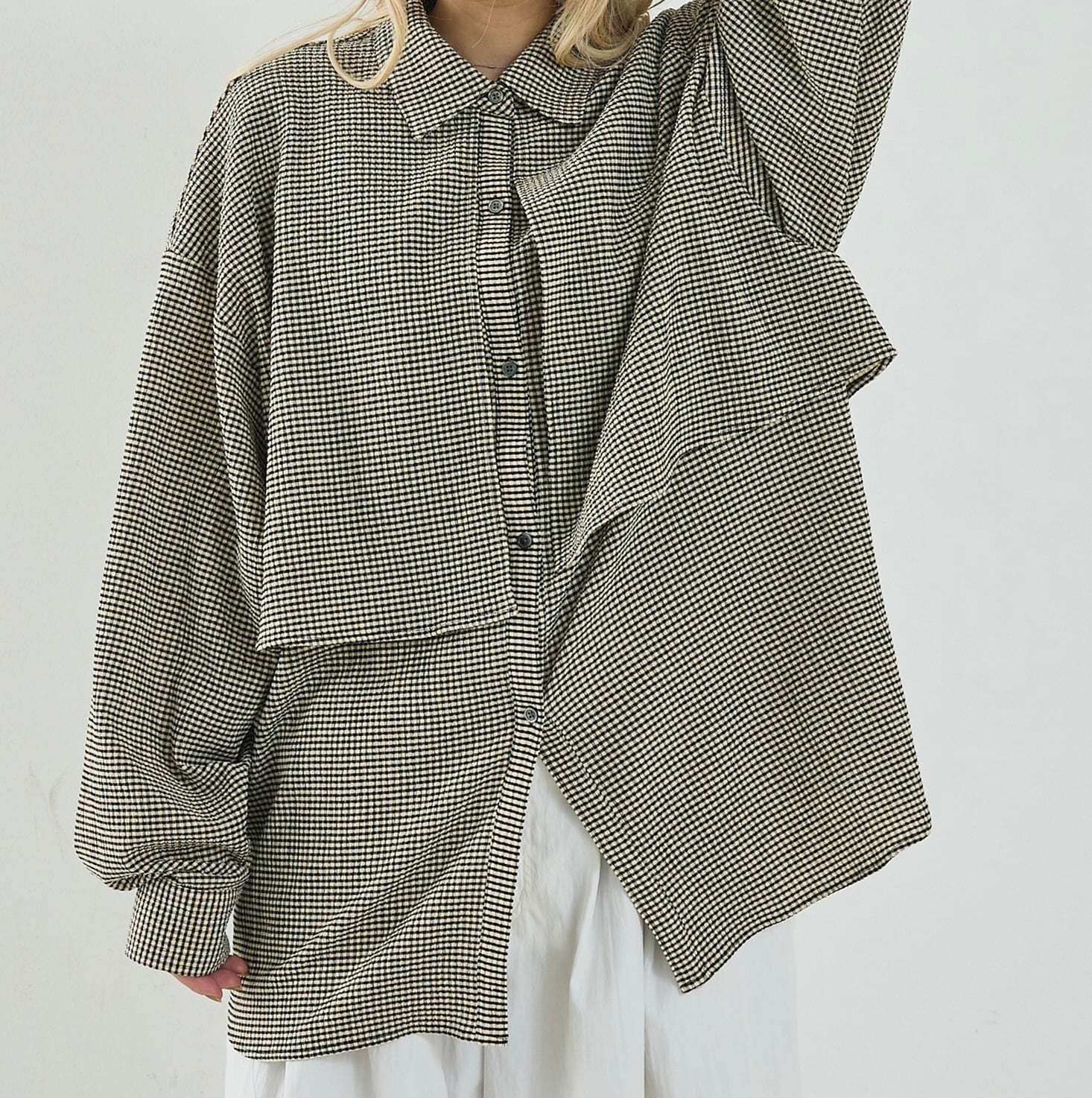 レイヤード風ヨークが映える、オーバーサイズシャツ