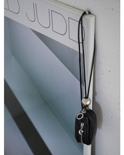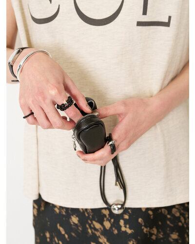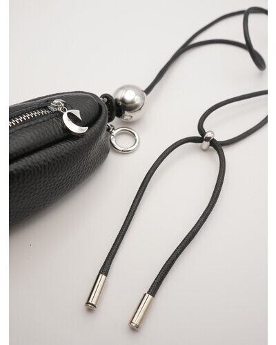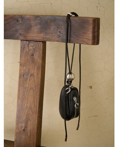 リアルレザー(牛革)のシンプルな縦長ポーチと、シルバーの丸玉付の黒コードの組み合わせが目を惹くポーチ&ネックレス。ポーチには丸カラビナが付いていますので、お手持ちのバッグやパンツのベルトループ部分につけて愉しんでも◎コードネックレス部分は長さ調節が可能なので、前に垂らしたり、ショルダー風にして斜めにつけてたり、短く持って小さいバッグのように使うのもオススメです。ポーチのチャック部分にはCHIGNONのCチャームを施しております。
