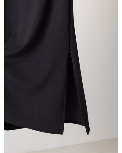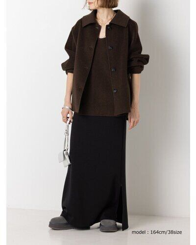 動くたびに揺れる裾は弾力のある生地と相性もよく、イージーながらも女性らしいきちんと感をプラスします。