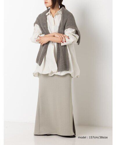 ストレスフリーなウエストの仕様はそのままに、膝辺りから広がるマーメイドラインのシルエットを採用。