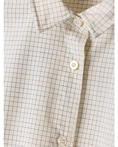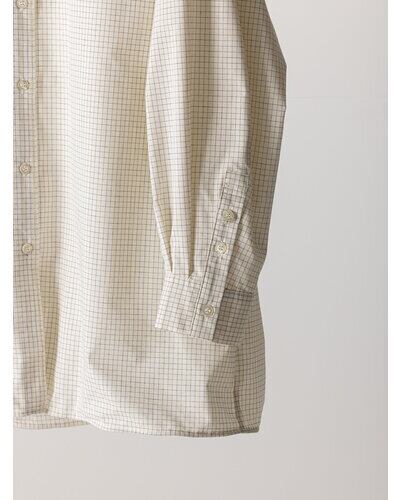 無地の2色は洗い加工入りの綿100%の生地を使用。洗いざらしのカジュアルな風合いの素材です。 チェック柄は方眼紙のような細かい格子柄を採用。シンプルでクリーンな柄ですが、ほのかに微配色のラインが入っているのがポイントです。