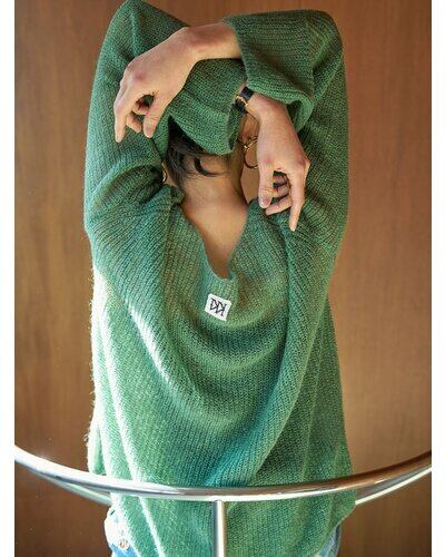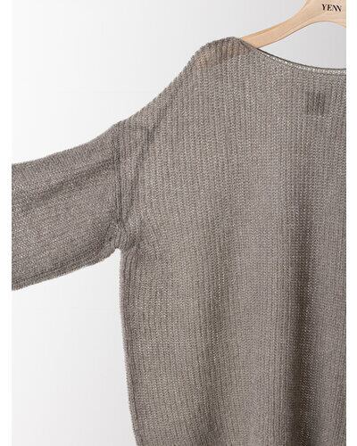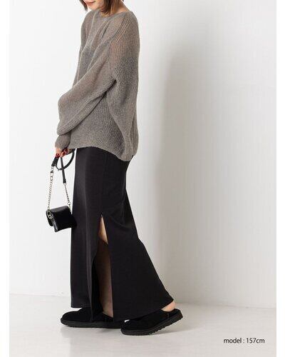 衿ぐりを広くあけたボートネックデザインと、ゆるっと肌から浮くようなゆとりのあるサイズ感で、女性らしく着こなしていただけます。 柔らかみのあるニュアンスカラーで秋のはじまりにおすすめのニットアイテムです。