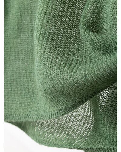 立体感のある片畦編みを採用、透け感がありながらもふっくらと空気を含むので暖かさもある1枚です。