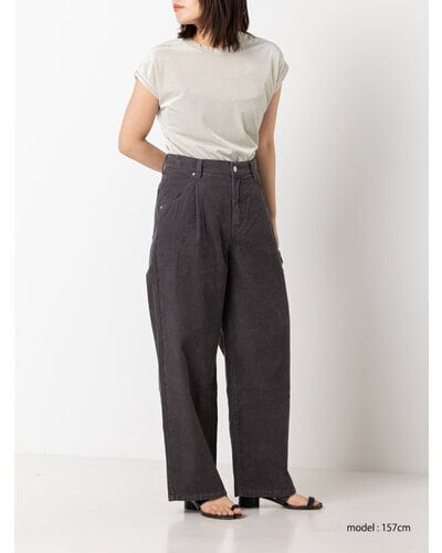 ベルベットの畝が立体的な陰影を生み、シンプルなフォルムに奥行きを与える一枚。やわらかな起毛感と上品な光沢が、落ち着いた華やかさを演出します。すっきりとしたクルーネックに、肩まわりを自然に覆うコンパクトなスリーブデザイン。身体のラインを拾いすぎないなめらかな落ち感で、上品に着こなせます。一枚で素材の表情を楽しむのはもちろん、ジャケットやカーディガンのインナーとしても存在感を発揮。控えめでありながら印象に残る、デイリーに使える大人のためのベルベットトップスです。
