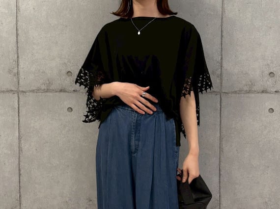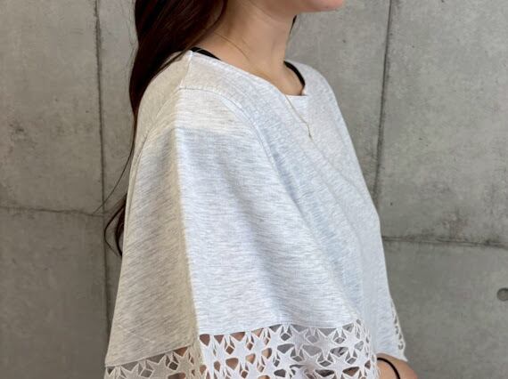 動くたびに広めの口から覗く星レースが、ふわりと揺れてさりげない存在感を演出。