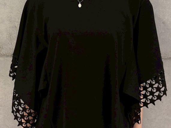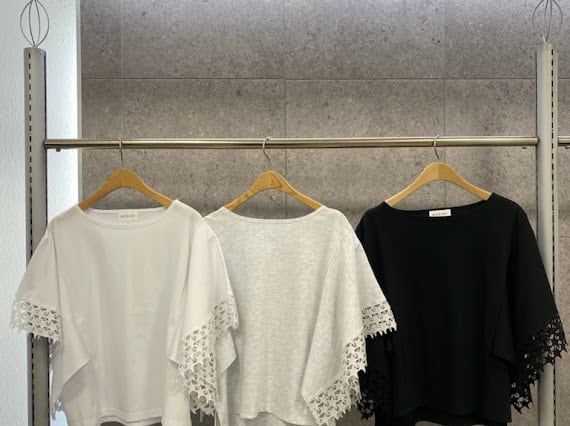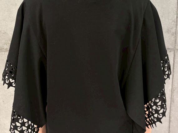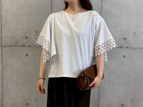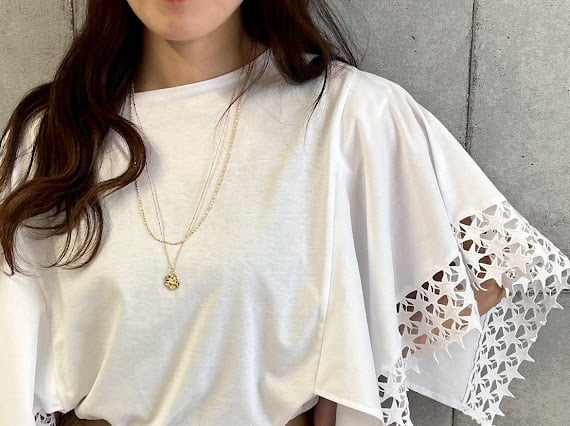 袖に星刺繍レースをあしらった、華やかさと上品さを兼ね備えたデザイントップス。
