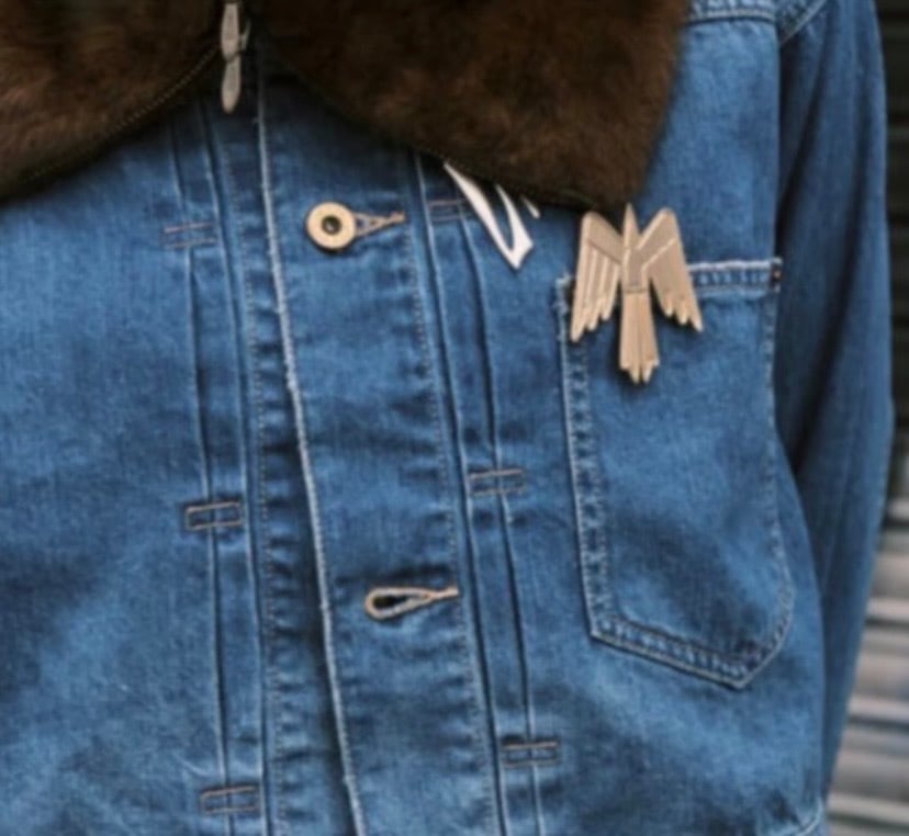 無機質なラインで構成されたコンドルモチーフのブローチ。