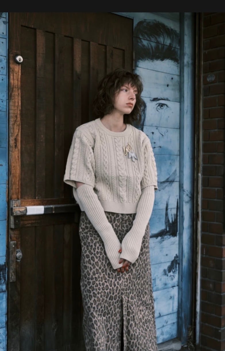 【LeMelange】アームウォーマー付5分袖ケーブルニット